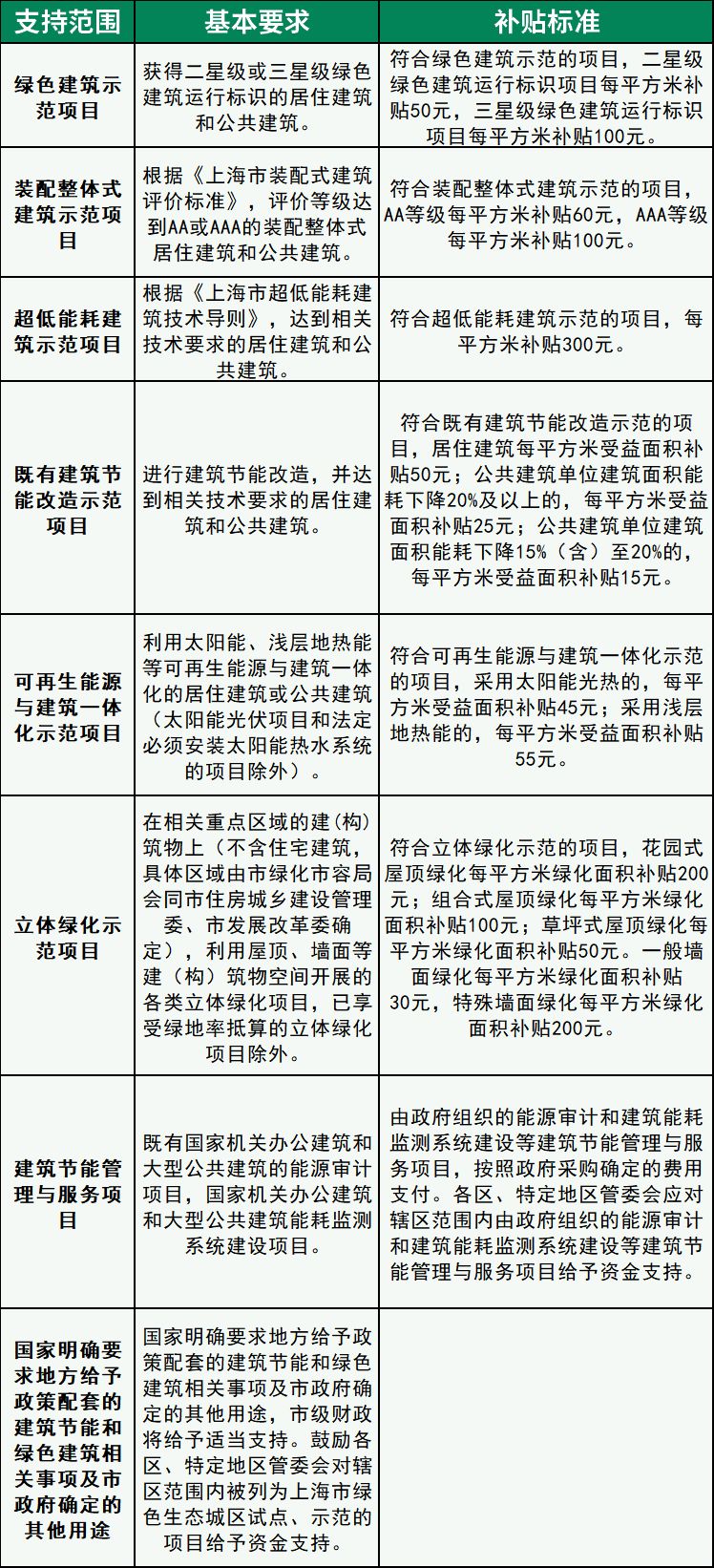 本次修訂將超低能耗建筑示范項目作為新增補(bǔ)貼項目類型,建筑面積要求為0.2萬平方米以上,補(bǔ)貼標(biāo)準(zhǔn)定為每平方米300元。