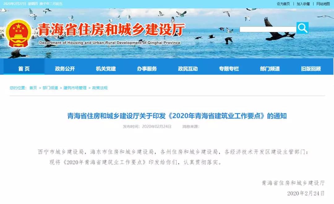 2020年青海省建筑業工作要點