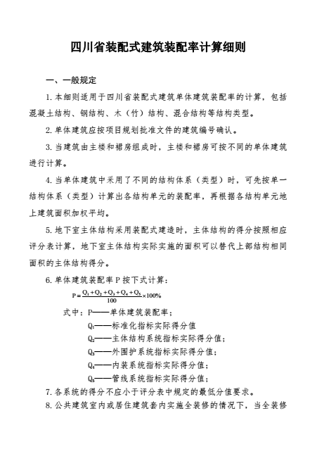 附件 四川省裝配式建筑裝配率計算細則